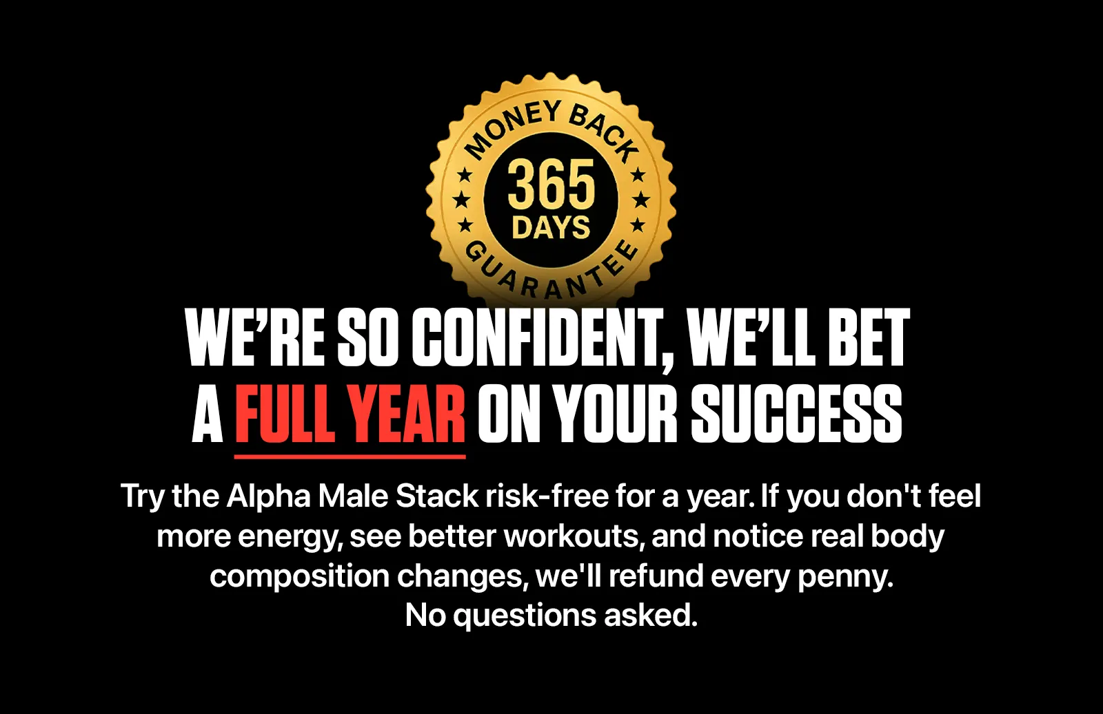 If you don't feel that masculine drive return with The Alpha Stack… you have 365 days to ask for a complete refund.